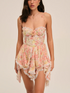 Peach Floral Print (Lace-trimmed hem / Open back / Adjustable straps)