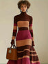 Where modern artistry meets everyday refinement, the Celeste Dawn™ Modern Lines Midi redefines casual elegance with its seamless balance of warmth, comfort, and sophistication. Crafted from a soft ribbed knit fabric, this dress showcases a stunning colour-block pattern in hues of brown, pink, white, and black, adding visual depth and timeless appeal. The high turtleneck and long sleeves bring a sense of cozy polish, while the subtly flared skirt and side pockets introduce movement and practicality. Perfect for autumn and winter days, the Celeste Dawn™ transitions effortlessly from indoor relaxation to city strolls, blending comfort with understated glamour in true British style.