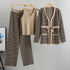 Three‑Piece Ensemble – High‑waist wide trousers, V‑neck sleeveless top and belted cardigan for total polish.